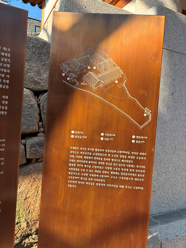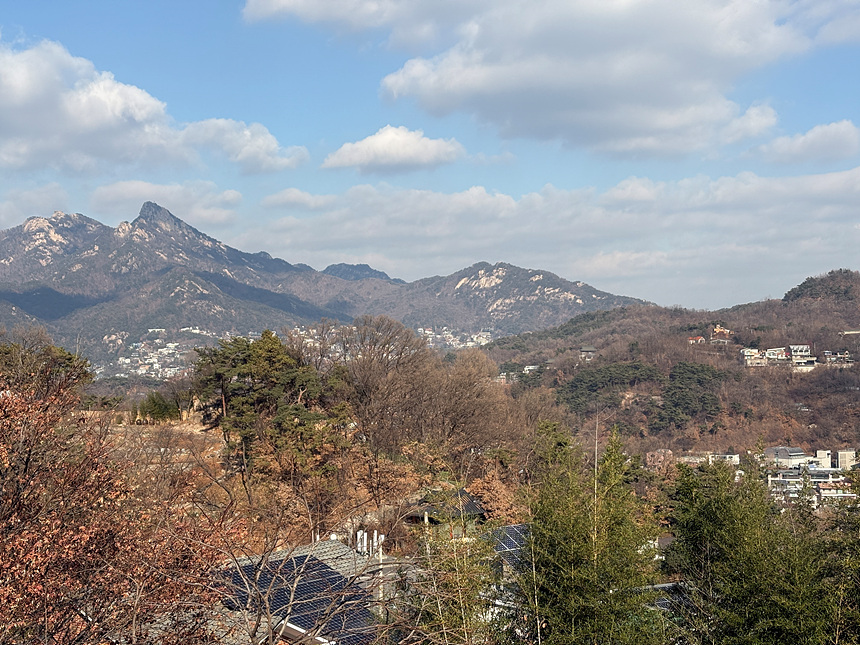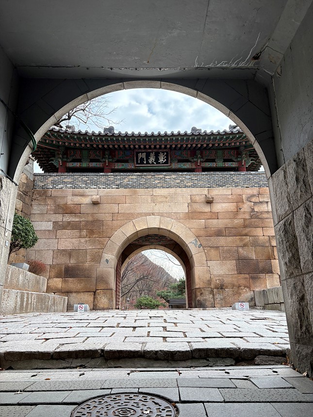 10:00 경복궁역 출발 > 자하문 고개(윤동주 문학관 앞 하차) > 창의문(자하문) > 윤동주 문학관 > 자하손만두 > 유금와당박물관(14:00에 문을 연다고 하여 통과) > 무계원(안평대군의 몽유도원도 모사본 관람. 절제 김종서 공을 비롯한 21명이 몽유도원도 옆에 글을 남겼음. 몽유도원도가 채색화였다는 것을 처음 내 눈으로 확인함) > 자하미술관(아쉽게도 2025년 전시는 11월에 마감하였음. 2026년부터 하는 전시 일정은 내년에 확인). 대신 자하미술관 높은 마당에서 멀리 서울의 풍경을 바라보는 건 눈호강이다 > 목인박물관(목석원) > 계열사(鷄熱社 ; 닭에 대한 열정이 넘치는 회사)에서 치맥 간식