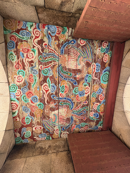 성문 홍예문 가운에 머릿돌에는 봉황을 돋을새김으로 새겨놨다.