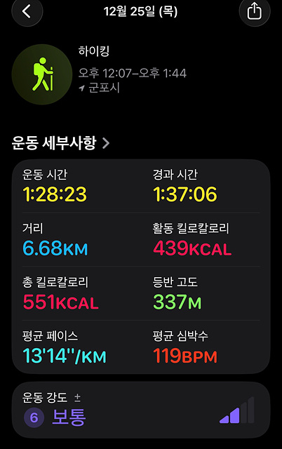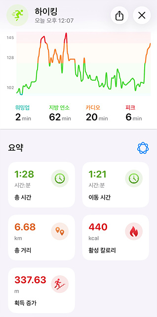 애플워치에 찍힌 오늘 운동 결과