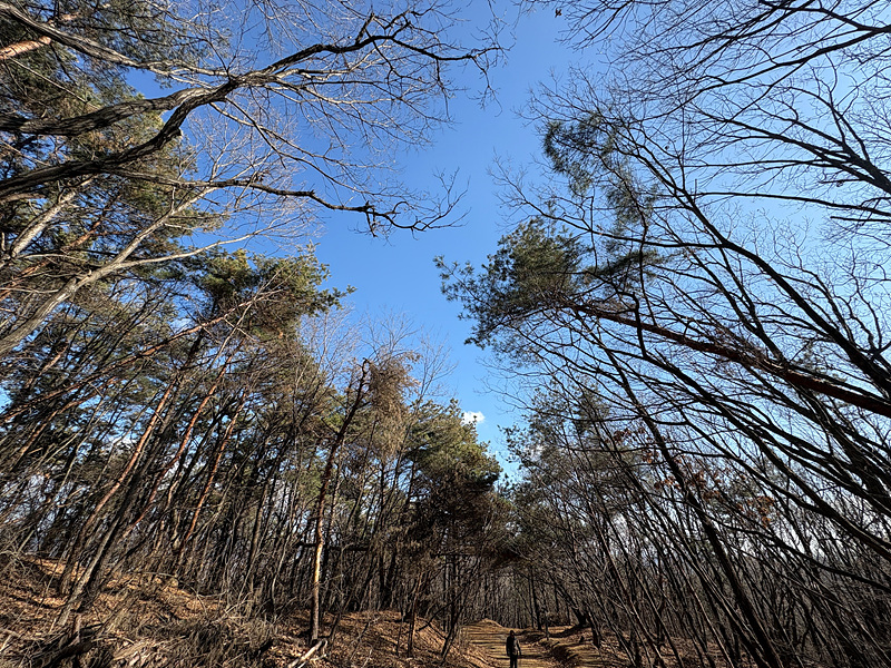 광각으로 찍으니 나무들이 동그랗게 머리를 맞댄 것처럼 나오는군.